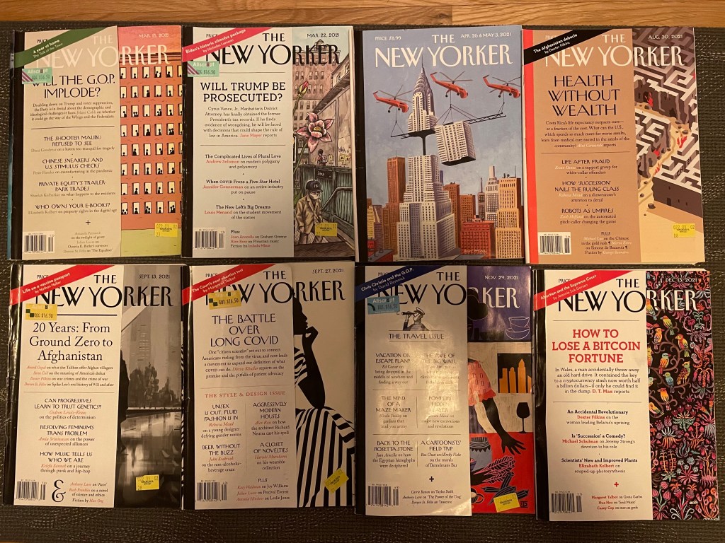 > I read 9 issues of The New Yorker despite not travelling until October 2021 (and yes the paper copies from the past 10 years+ made it in the move)