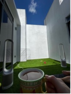 The Saturday and Sunday are no-screen time: reading books or The New Yorker in the new patio, sipping tea. The balcony is for sunsets with gin & tonic.