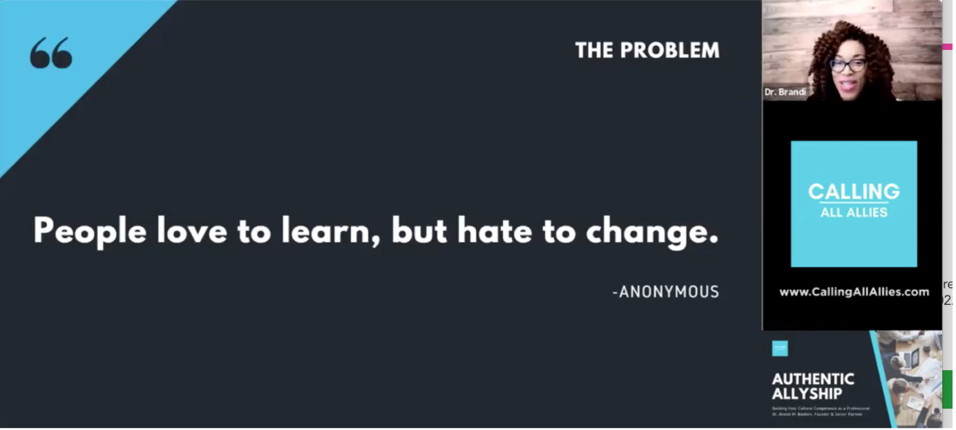 So good to hear Dr Brandi as always and specifically what the Authentic Allyship seems in DEI: People love to learn, but hate to change.