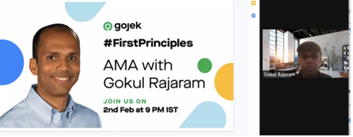 2 Feb: GoJek FirstPrinciples was an AMA session with DoorDash’s Gokul Rajaram and 8 July with Deepak Kumar from Zeta Suite. Learned about Process design John Boyd’s OODA loop